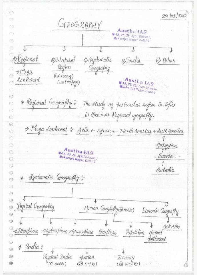Aastha IAS BPSC (Geography) Prelims Handwritten Notes