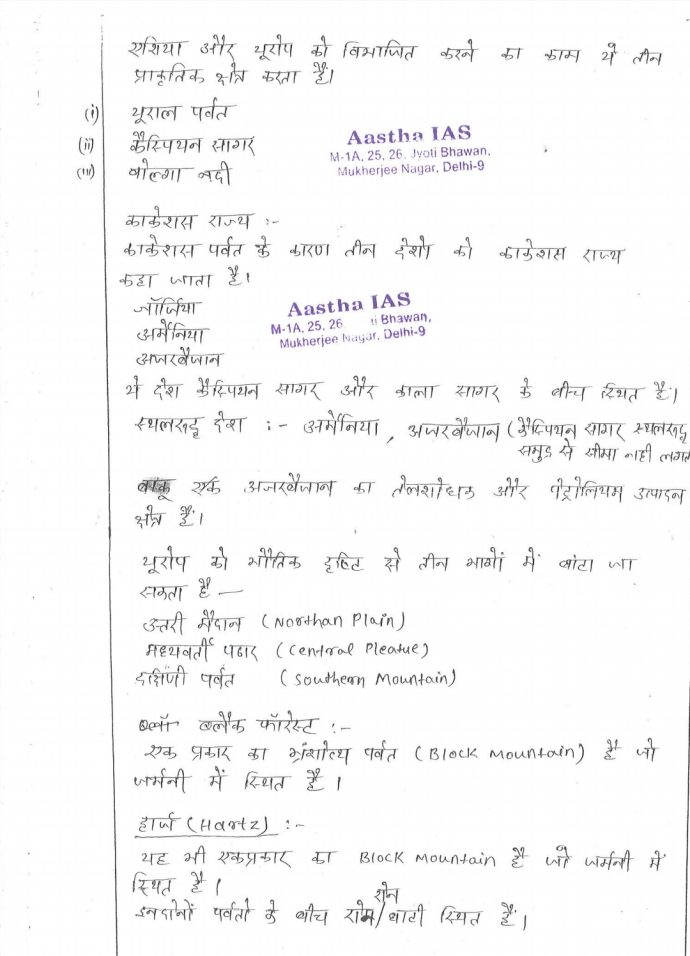 Aastha IAS BPSC (Geography)Hindi Prelims Handwritten Notes