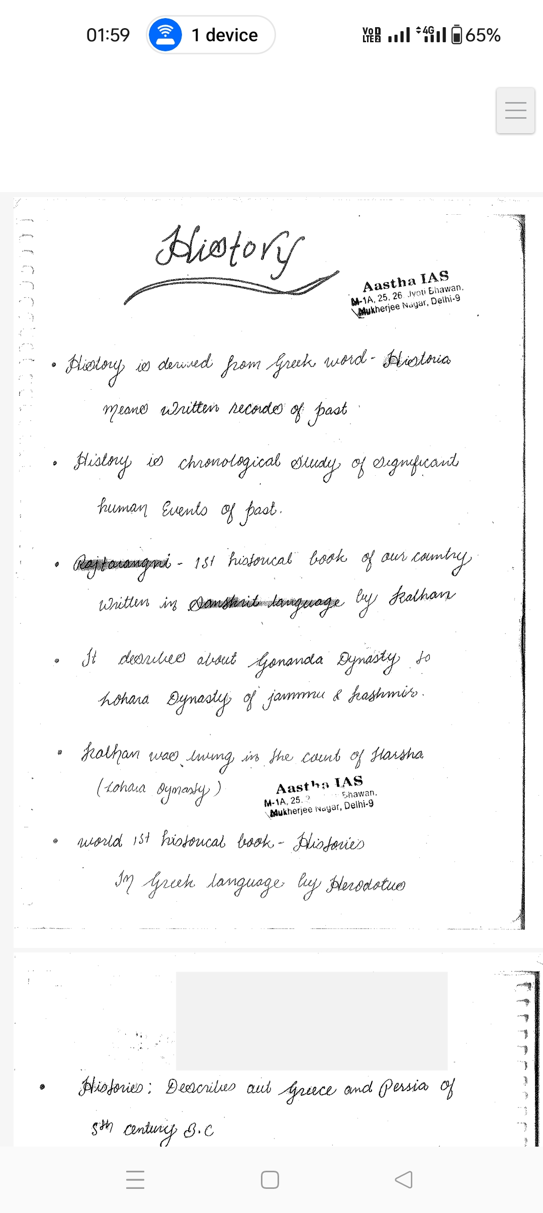 Aastha IAS BPSC (History) Prelims Handwritten Notes