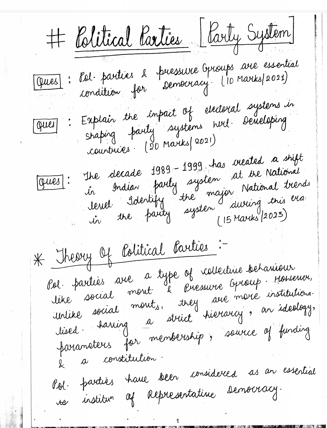 Shubhra Ranjan IAS (POSTAL CORRESPONDENCE) Political Science Optional 10 Booklets Handwritten Class Notes- 2025-26 (SP SIR NOTES)