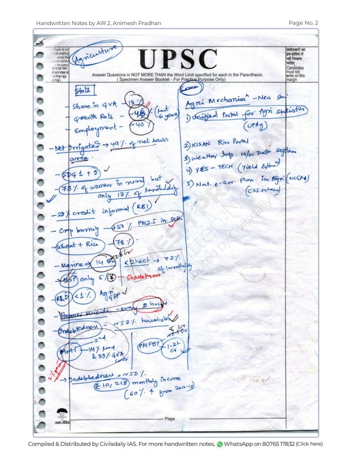 Topper (Animesh Pradhan AIR-2) Economy Handwritten Notes CSE- 2023 by Civilsdaily IAS